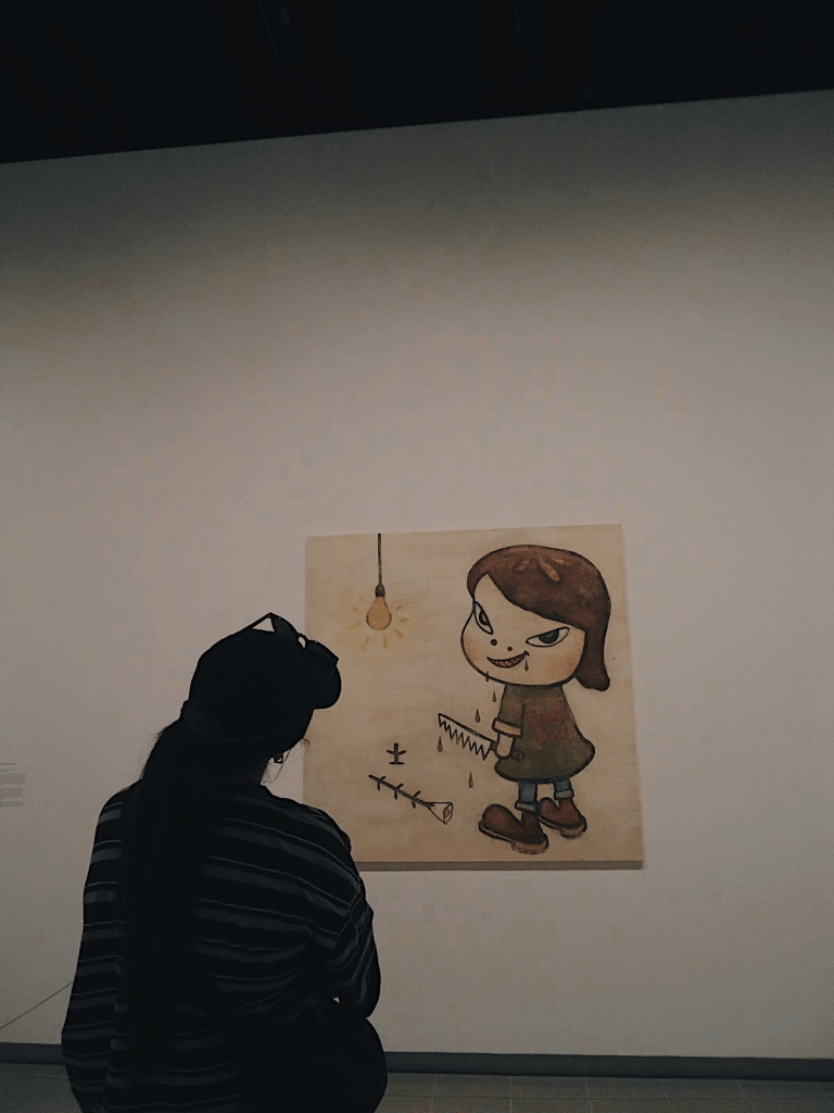 We went to the Yoshimoto Nara expo at the Southbank Centre. The expo opened in Germany last year, at the Museum Frieder Burda, which is almost at the frontier with France, too far for me to go (still getting over my German train trauma after my last trip to Amsterdam…more on that in a next post).